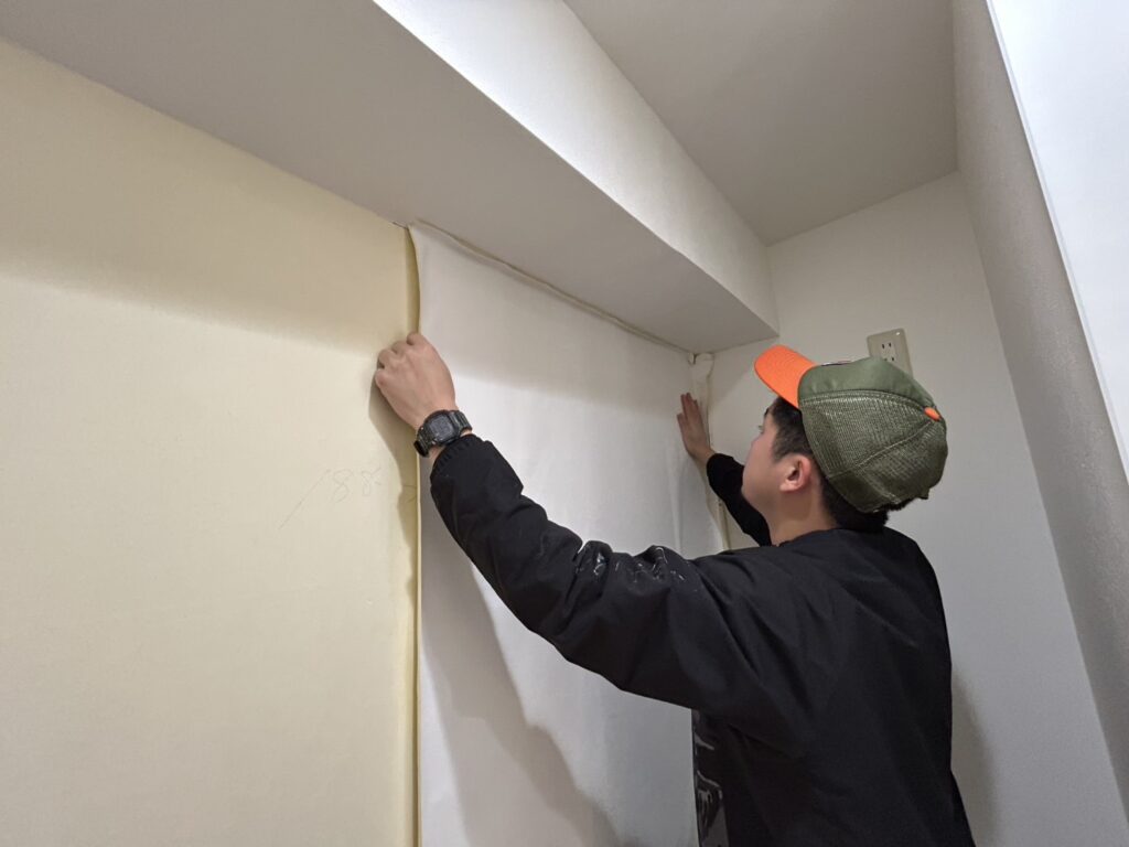 既存の壁紙と床材を撤去し、新しいクロスとCFへ貼り替えていきます。